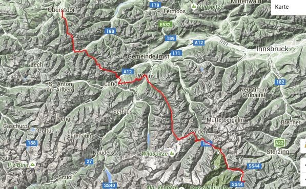 bis nach Oberstdorf. Gerne können Sie auf Wunsch überall auf unserer Route zusteigen bzw. aussteigen. Wir haben den direkten Reschenpass für die Rückfahrt gewählt, da wir das starke